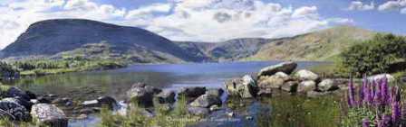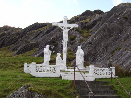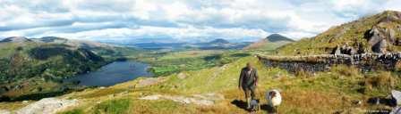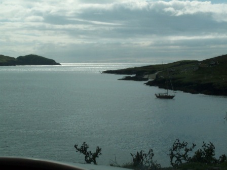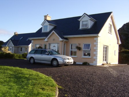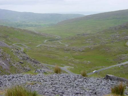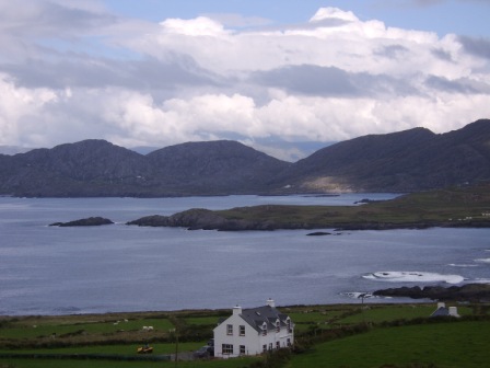 The music on this page is meant as a sing -a- long with you joining in the chorus so make sure you do! Music by Sean Dunphy - Come back Paddy Reilly, Green Glens of Antrim and you have to join in on this one THE WILD ROVER !! I was only in Ireland for a week but here are a few general views for you to look at. I stayed in the South West area of Ireland on the borders of County Kerry and County cork. This is where I stayed with the old jalopy outside. It was in County Cork ( Just ) on the Beara Peninsular and with views like this from the dining room I did not hurry my meals. The Healy Pass is arguably the most beautiful mountain pass in all of Ireland. The Pass crosses the Beara Peninsula and it has a definite Alpine look and feel with spectacular views throughout. This shot was taken overlooking Glanmore Lake which is on the descent side of the summit that reaches 1100 ft. The Beara is not as heavily travelled as the other south Western peninsulas and that's good for the discriminating traveller because it is well worth the time and effort to explore. If you love beautiful scenery, you will not be disappointed. I had to traverse this pass every time I went out and came home - tricky in the dark and spooky in a mist! See below for more of the same.